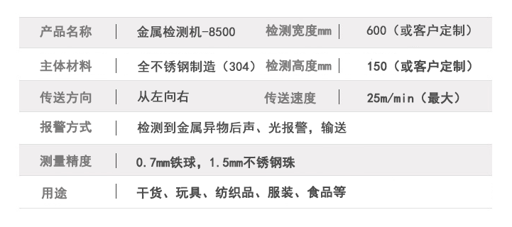 6. 金屬檢測機采用優(yōu)質(zhì)不銹鋼機身,防水密封結(jié)構適應冷庫潮濕環(huán)境也便于清洗