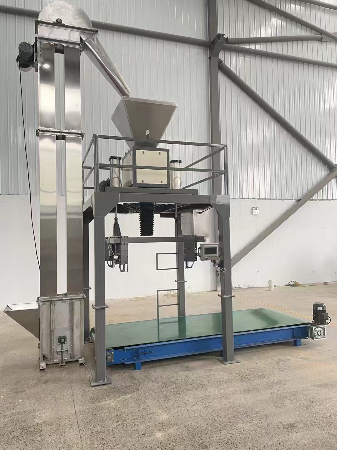 ?上海鑄衡工廠生產(chǎn)的這臺(tái)鉀肥噸袋自動(dòng)噸包機(jī)采用單/雙螺旋強(qiáng)制給料控制系統(tǒng),無(wú)級(jí)變頻調(diào)速控制給料速度,快速給料由大小螺旋快速進(jìn)料,慢速給料由小螺旋精加料完成,結(jié)合精度控制閥實(shí)現(xiàn)包裝速度和精度的自動(dòng)控制,性...